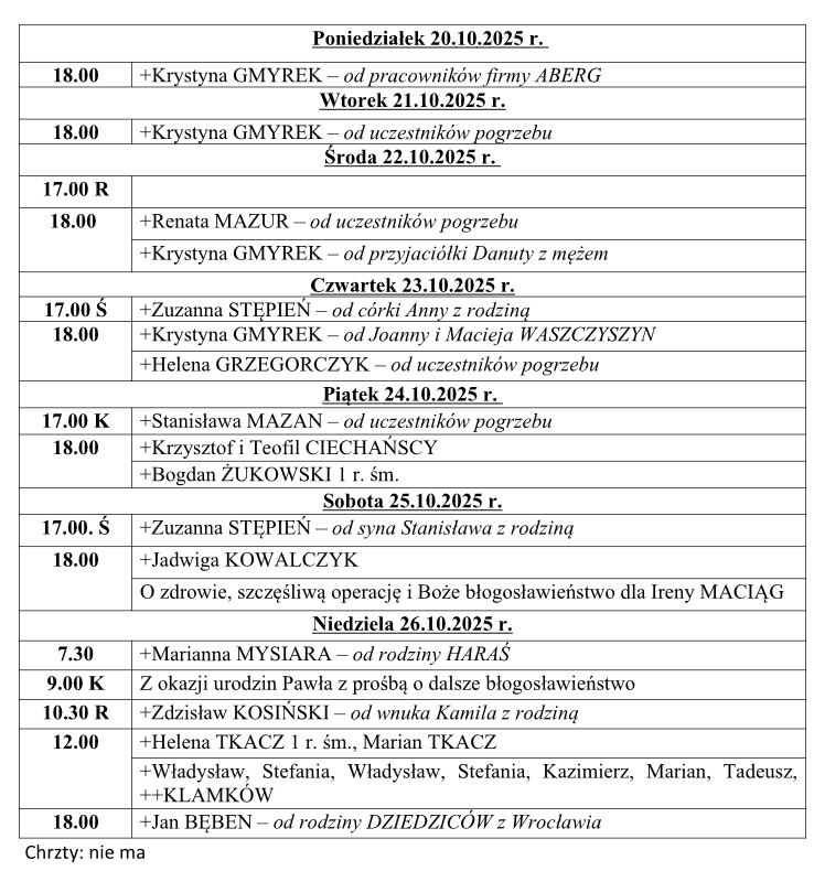 XXIX NIEDZIELA ZWYKŁA – 19 października 2025 r.